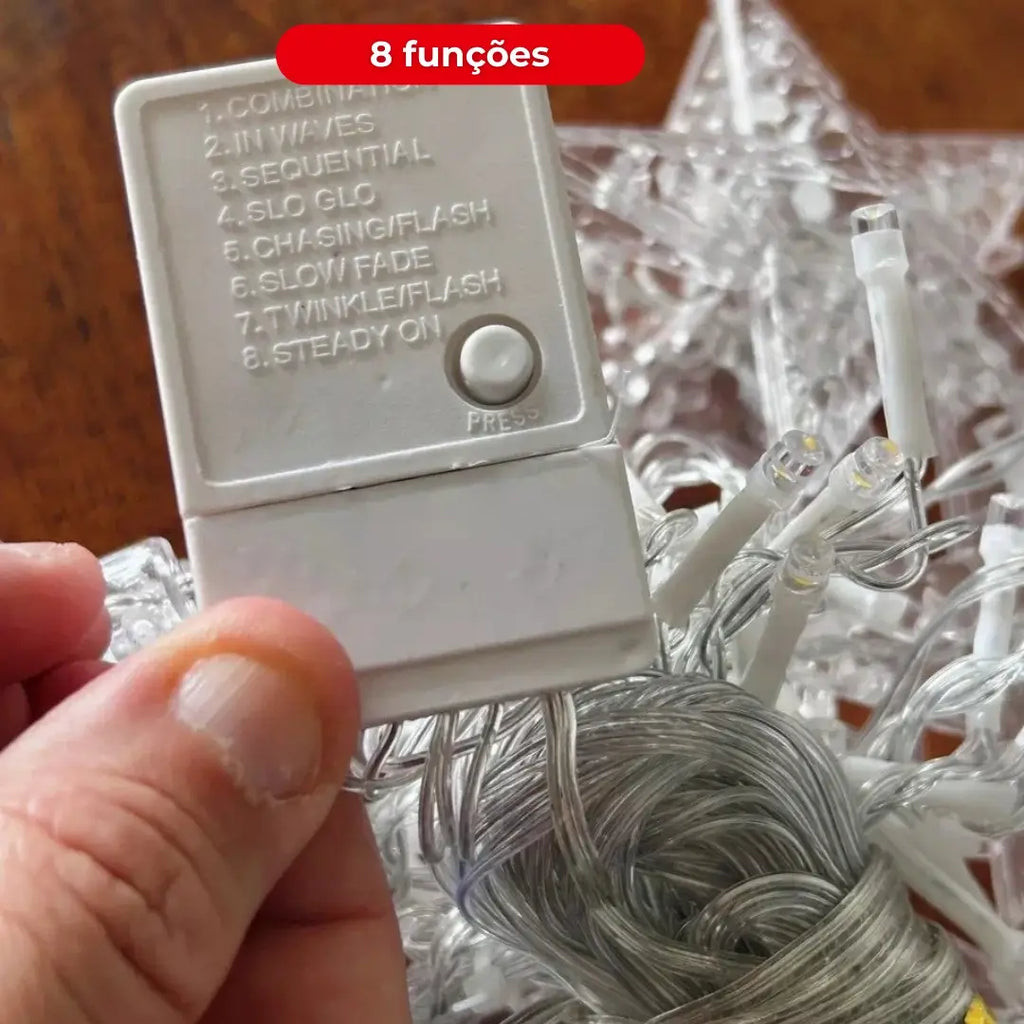 Não é um pisca pisca comum, são 8 funções diferentes para você usar do jeito que quiser. Escolha o brilho e intensidade que combina com seu natal!